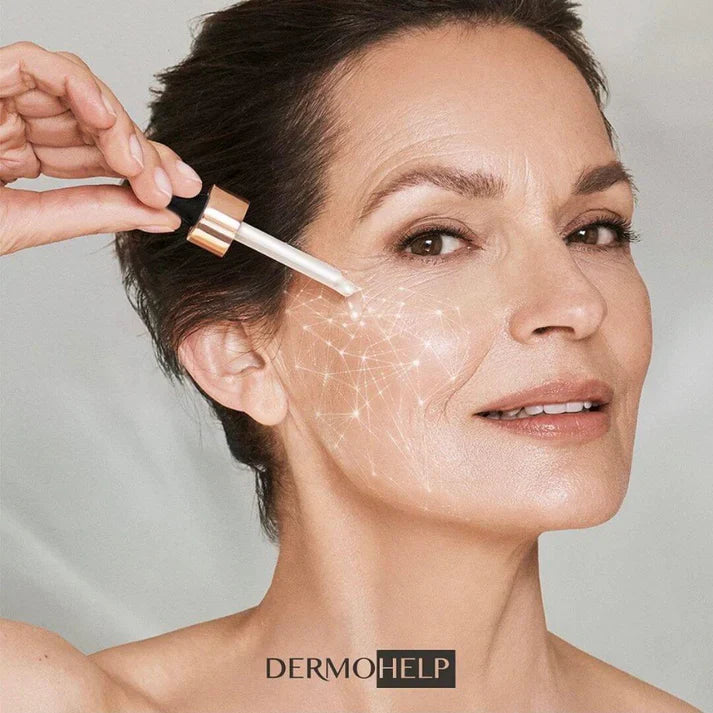 - Aplica **3 a 5 gotas** sobre la **piel limpia y seca** de tu rostro, cuello y escote.